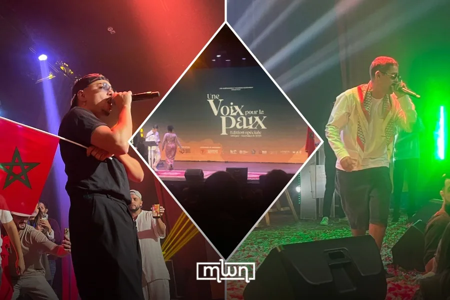 The event featured appearances from Lartiste, Rachid El Ouali, Yassine Belattar, MH, Hanna Assouline, and Yasmina Asrarigus, all echoing the night’s message: peace, art, and unity.