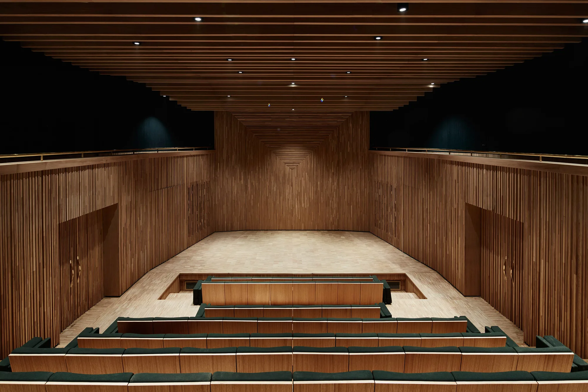 In that sense, the auditorium is drawing attention to the two arts’ shared language of performance.